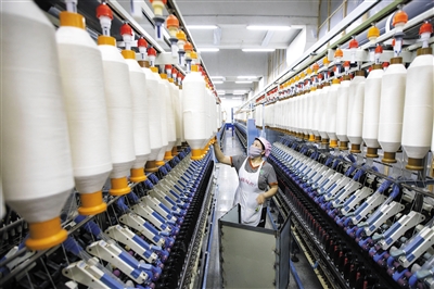 1月29日,山东省东营市广饶县千硕纺织有限公司的工人在智能化车间作业。
