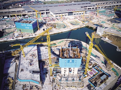 绍兴北站TOD综合交通枢纽工程建设现场(1月31日摄,无人机照片)。由中建三局承建的这项工程为浙江省重点工程,建成后将是集商务办公、科创研发、星级酒店等多重功能于一体的智慧型城市交通综合体(无人机照片)。