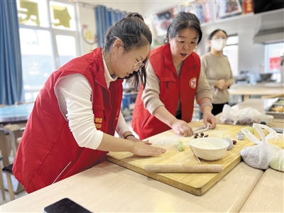 “蒸花馍是咱们过年的传统,老一辈传下来的手艺,我们要一辈一辈地传下去。”此次活动特邀专业面点老师来到活动现场,向大家传授花馍制作方法。面点老师讲解了花馍的历史和文化寓意,并准备好面粉、红枣、黑豆、剪刀、模具等制作材料和工具。“首先是揉面,面一定要揉软拉松,只有揉透醒透的面才能做出形状优美、入口松软的花馍。”老师一边示范,一边讲解,接下来就是制作各种造型的花馍,通过切、揉、捏、揪、挑、压、搓、拔等手法,再配上红枣、黑豆等辅料,不一会儿,一个个色彩鲜艳、造型优美的玉兔、寿桃、福袋、元宝、玫瑰花等花馍就在大家的手中成型了。