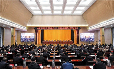 在讲话中,卢东亮围绕党的二十大报告确定的重要思想、重要观点、重大战略、重大举措,紧密结合“五个牢牢把握”“九个深刻领会”等要求,深入阐述了党的二十大精神蕴含的历史逻辑、理论逻辑和实践逻辑,就走好新征程提出要求。卢东亮指出,党的二十大精神思想深邃、视野宏阔、内涵丰富,深入学习领会党的二十大精神,必须抓纲举目、学深悟透,保持恒心、常学常新。市管干部是全市的“关键少数”,要在学习宣传贯彻党的二十大精神上带好头、走在前、作表率,把深入学习党的二十大精神与学习贯彻习近平总书记考察调研山西重要讲话重要指示精神结合起来,深刻领悟“两个确立”的决定性意义,增强“四个意识”、坚定“四个自信”、做到“两个维护”,进一步增强推动高质量发展、服务群众、防范化解风险的能力本领,引导带动全市广大干部群众从党的二十大精神中汲取奋进力量,以昂扬状态和扎实工作推动党的二十大决策部署在大同落地见效。