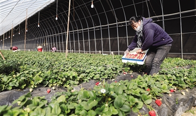 近日,辽宁省台安县的大棚草莓陆续进入采摘期,果农加紧采摘供应市场。台安县持续推进农业产业结构调整,引导农民发展特色设施农业,促进农民增收,助力乡村振兴。 新华社记者 姚剑锋摄