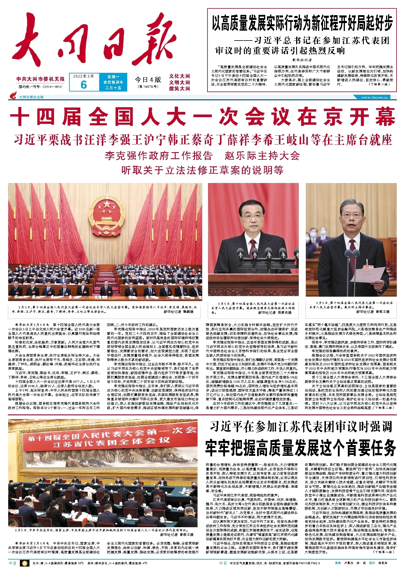 ~~~——习近平总书记在参加江苏代表团审议时的重要讲话引起热烈反响