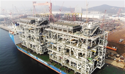 当日,由中国海洋石油工程股份有限公司承建的又一超大型国际能源装备——加拿大LNG(液化天然气)项目的最后两个核心模块在青岛场地完工装船,至此,该项目中由我国承建的模块全部顺利交付,标志着我国在超大型LNG模块化工厂一体化联合建造技术能力方面已走在国际前列。