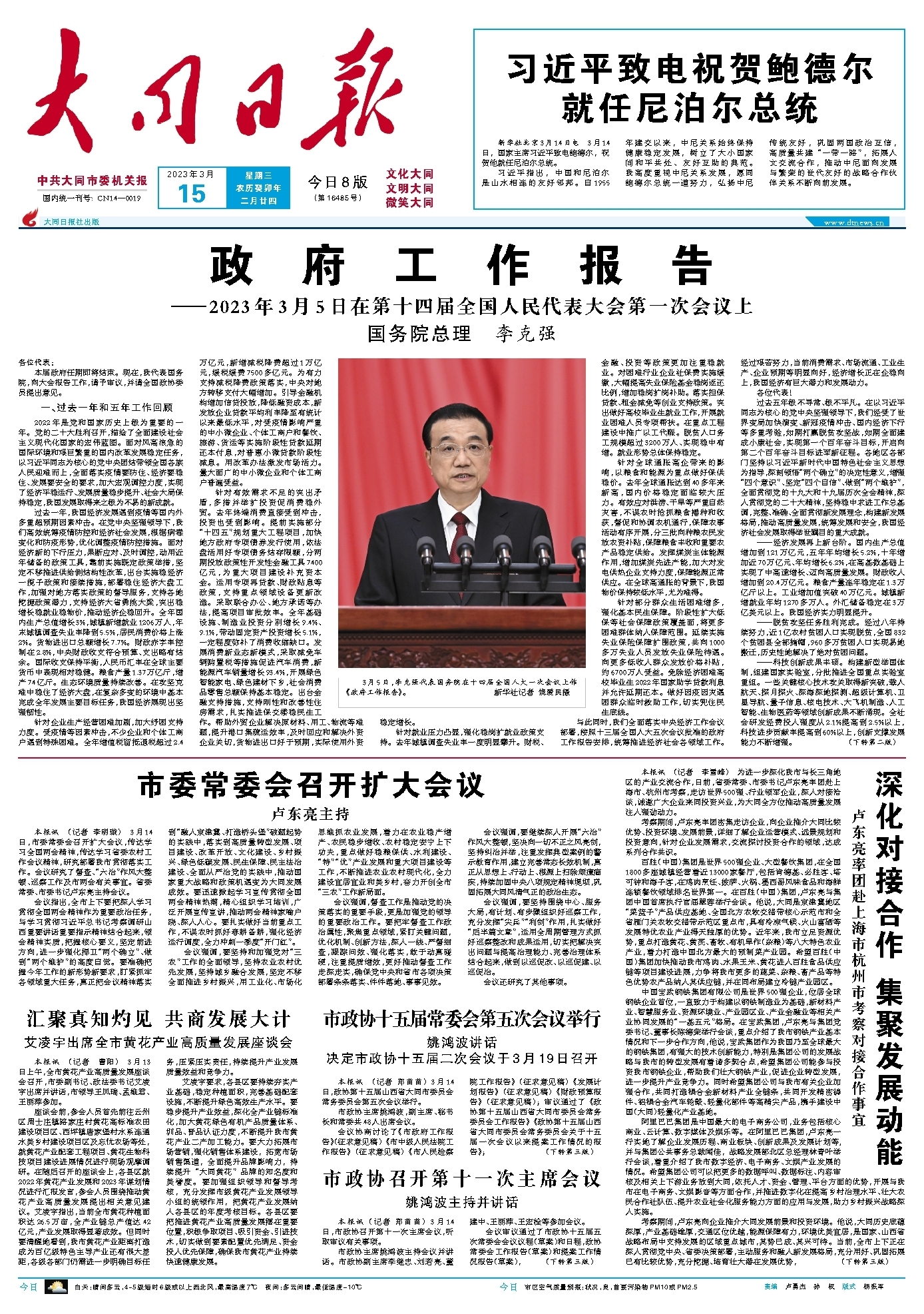 ~~~—2023年3月5日在第十四届全国人民代表大会第一次会议上 国务院总理 李克强