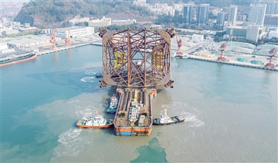 当天,约1.2万吨重的恩平20-4平台导管架从深圳启航出海,奔赴深圳西南方约200公里的恩平油田海域。导管架平台是被广泛应用的海洋油气生产设施,主要由导管架和上部模块两部分组成,导管架相当于海上平台的基座,“扎根”海床,将上万吨的平台托举在海面上。恩平20-4平台是中国海油恩平15-1油田群的中心平台之一,就位海域水深约86米,导管架高104米。 新华社记者 毛思倩摄