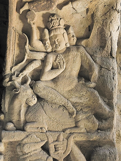 多首多臂天神形象来源于古印度神话中的天神湿婆和毗湿奴,他俩一位可以毁灭宇宙,另一位则能够创造世界。这种将婆罗门教大神转化为佛教护法神的现象,是印度密教思想的反映,完全属于西来像法,为中西石窟寺的绝版遗存。