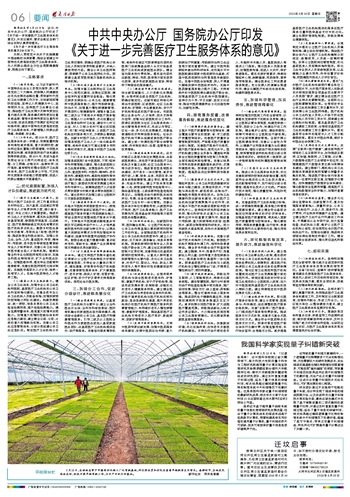 中共中央办公厅 国务院办公厅印发 《关于进一步完善医疗卫生服务体系的意见》