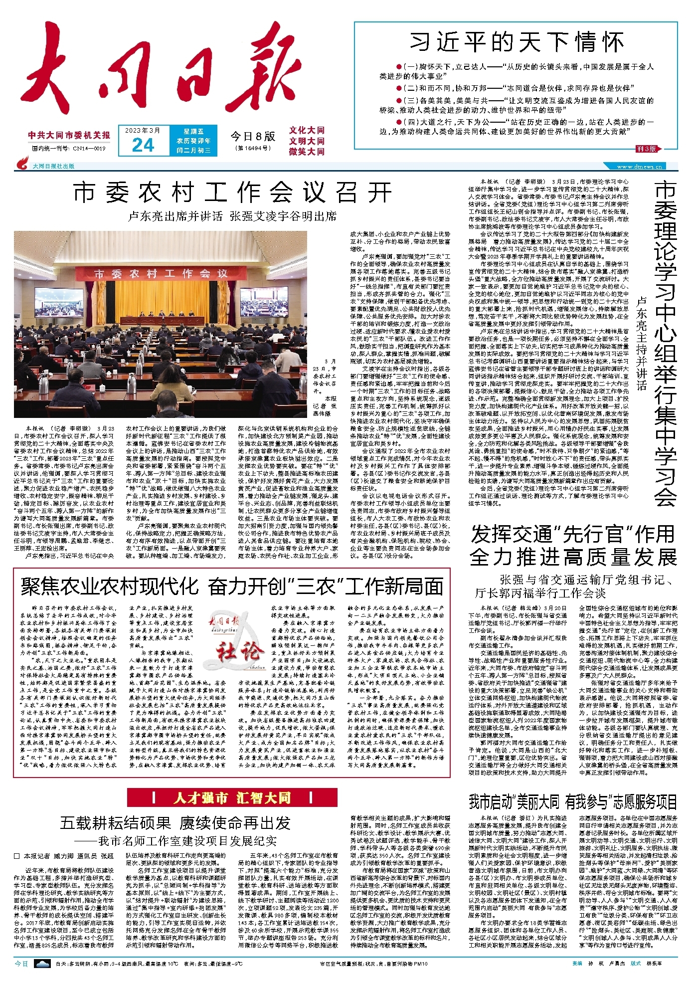 聚焦农业农村现代化 奋力开创“三农”工作新局面