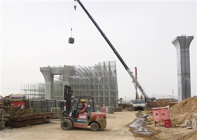 3月24日,在同煤快速干线西段施工现场,吊车、运输车等大型机械正在有序运转,工人们忙碌地作业。市住建局现场负责人向记者介绍,2月中旬施工人员陆续赶到工地,于3月1日全面复工,目前施工现场共有200余人。同煤快速干线西段包含大同市开源街快速化改造工程(落地段)和大同市黄花产业园区配套基础设施项目。目前,开源街快速化改造工程的工人们正忙着搭建盘扣支架、切割钢筋,为下一步箱梁安装做准备;黄花产业园区配套基础设施项目的工人们正在进行桥梁桩基、承台、墩身和桥梁混凝土箱梁的施工。 本报记者 戎禹仁摄