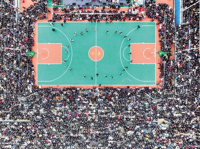 当日,贵州省首届“美丽乡村”篮球联赛总决赛在黔东南州台江县台盘村举行,黔东南州代表队以68比65的比分战胜遵义市代表队,获得冠军。这项由台盘村“六月六”吃新节篮球赛发展而来的赛事因为火热的现场氛围和“接地气”的办赛风格,在2022年“火爆全网”,被网友亲切地称为“村BA”。 新华社记者 欧东衢摄