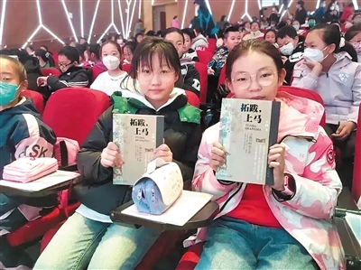石囡,中国作家协会会员、鲁迅文学院第41届高研班学员、大同市作家协会副主席。当他走上讲台,台下响起热烈的掌声。“哇!石囡老师长得好帅,像一位大哥哥。”台下,有的同学发出这样的声音。当老师将石囡著作《拓跋,上马》发到同学们手中时,同学们更是投来欣喜的目光。他们一边翻阅着《拓跋,上马》,一边听着石囡的讲授。此次,石囡作了《穿越千年话北魏》的专题讲座。讲座中,石囡告诉同学们,作为一名大同人,我们不能不熟悉北魏。他带领同学们展开想像的翅膀,想像自己如果处在1600年前的平城时代,北魏是什么样子的呢?他从历史方位、北魏定都、丝绸之路、中华文明等方面让同学们感知“北魏平城的国际范儿”,告诉他们,读历史,就是一场穿越游戏,就是代入体验;读历史,就是与古人对话;读历史,就是一种文化自信自强。最后,他为同学们推荐了适合他们阅读的《半小时漫画中国史》《上下五千年》《地图上的世界简史》等书籍。