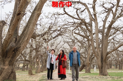 近日,游客在兰州市皋兰县什川古梨园里赏花。