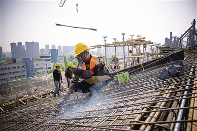 4月17日,中建三局的建筑工人在杭钢工业旧址综保项目一期工程现场施工。2015年,杭钢半山钢铁基地安全平稳关停。2022年11月,杭钢工业旧址综保项目一期工程开工,对杭钢半山钢铁基地进行保护与改造。项目集工业旧址观光、文创产业园与商业中心等功能于一体,预计于2023年12月竣工。