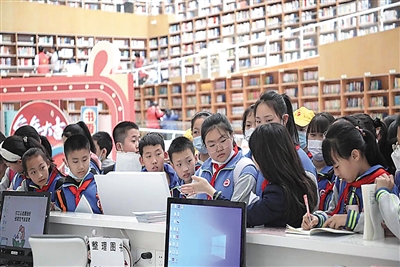 本报讯 (记者 赵小霞) 4月13日,云冈区新胜第一小学校师生百余人走进市图书馆(大同市少儿图书馆)参加研学实践活动。活动内容丰富多彩,涵盖图书馆区域。市图书馆工作人员向师生介绍了智能借还书机的操作和使用,带领他们到“学习书屋”重温经典。师生们兴致勃勃地拿着纸和笔认真地记录着所听所想。