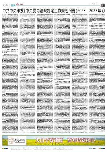 中共中央印发《中央党内法规制定工作规划纲要(2023—2027年)》