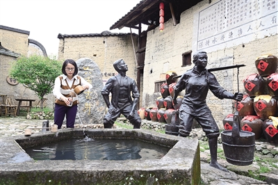 4月20日,游客在屏南县代溪镇北墘村一处可用于酿酒的古井前取水饮用。
