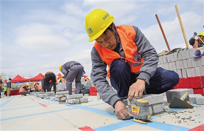 当日,在中建三局内蒙古警察职业学院新校区建设项目地,第四届内蒙古呼和浩特市“工匠杯”建筑行业职业技能竞赛开赛。建筑工人们通过职业技能比拼,迎接五一劳动节到来。 新华社记者 刘磊摄