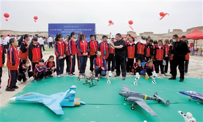 为加强我市科普能力建设,深入实施全民科学素质行动,树立热爱科学、崇尚科学的社会风尚, 5月20日,2023年大同市“体验沧海桑田之变和大自然之美”主题科技活动周启动仪式在大同土林举行,有关单位通过展板、宣传资料、机器人、无人机等,在现场展示科技成果、普及科普知识。图为工作人员向学生们介绍机器人的跳舞原理。