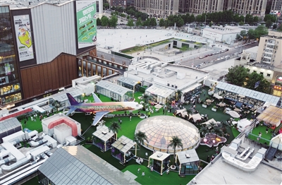 楼顶空降“飞机” 商圈聚集人气