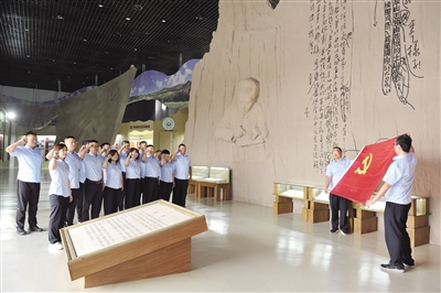 “七一”前夕,平城区劳动保障监察执法大队党支部组织党员及入党积极分子20人赴大泉山红色教育基地开展支部主题党日活动,通过参观真实的历史照片、文件、物件等,党员们身临其境地接受了党性教育,提升了党员学习热情。本报记者 于宏摄