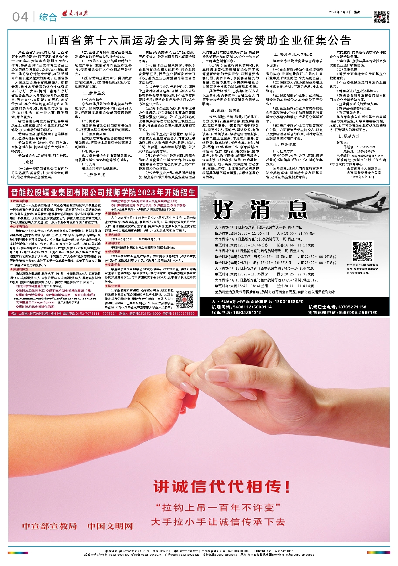 山西省第十六届运动会大同筹备委员会赞助企业征集公告
