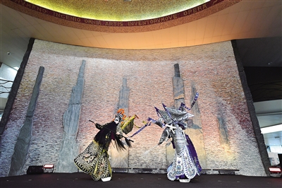 7月6日,在瑞士日内瓦,表演者在中国与世界知识产权组织合作五十周年系列活动——世界知识产权组织主场活动上表演京剧。中国与世界知识产权组织合作五十周年系列活动——世界知识产权组织主场活动6日晚在日内瓦举行。 新华社记者 连漪摄