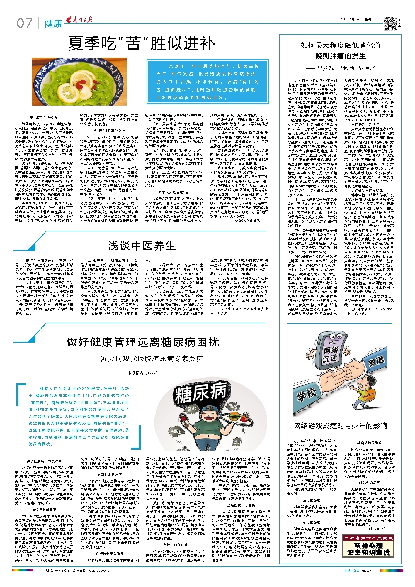 ~~~又到了一年中最炎热时节。持续高温天气,阳气亢盛,极易造成机体津液损失,使人口干舌燥、不思饮食。所谓“夏日吃苦,胜似进补”,此时适当吃点苦味的食物,比吃进补的食物对身体更好。