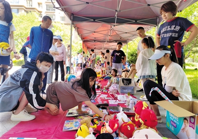 7月23日,平城区永固社区亲水湾龙园的小朋友在该小区第三届暑期儿童“跳蚤市场”上选购、换购闲置物品。活动中,小朋友们把玩具、文具、书籍等闲置物品拿到“跳蚤市场”进行交易、换购,既丰富了孩子们的暑假生活,也锻炼了他们的动手、交流能力,培养了勤俭节约、低碳环保意识。