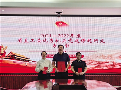 市直机关工委聚焦机关党建重大理论和实践问题,积极组织所属基层党组织开展机关党建课题研究。为表彰先进、激励典型,8月17日,市直机关工委对2021年市委政研室刘志春、市气象局杜美琳的研究课题,2022年市机关事务管理局程毅的党建研究课题给予奖励。 孙婧文摄