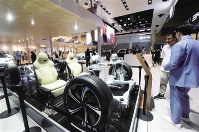 8月25日,在第二十六届成都国际汽车展览会腾势汽车展台,参观者在了解云辇A智能空气车身控制系统。当日,第二十六届成都国际汽车展览会在位于四川省成都市的中国西部国际博览城开幕。本届车展吸引129个国内外汽车品牌参展,展出车辆近1600辆,展示面积超过20万平方米。 新华社记者 唐文豪摄