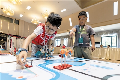 8月25日至8月27日,由中国电子学会主办的2023世界机器人大赛锦标赛(昆明)在云南省昆明市盘龙区举办。来自全国各地的1439支队伍、5171名青少年选手围绕不同赛项展开激烈角逐。参赛选手在比赛中同台竞技、相互学习,不仅培养了创新意识、动手能力和团队精神,还提高了科学素质。 新华社记者 陈欣波摄