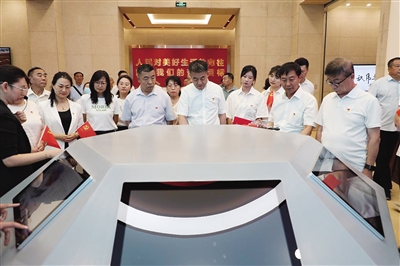 近日,市交通运输局组织党员开展“守初心 强交通”主题党日活动,按照讲解员的提示,大家体验了丰富多彩的党课方式,通过“人机”互动,有效地提高了学习效果。 石永叶摄