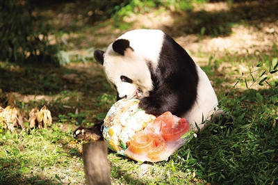 8月27日,大熊猫“添添”在美国首都华盛顿史密森学会国家动物园享用生日蛋糕。当日,雄性大熊猫“添添”在美国首都华盛顿史密森学会国家动物园迎来26岁生日。 新华社发 (温斯特德·巴恩斯摄)
