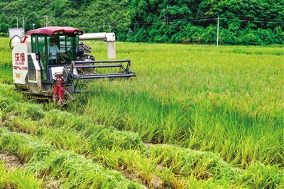 8月26日,农机手驾驶收割机在贵州省岑巩县羊桥土家族乡祝坝村收割制种水稻。