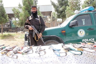 这是8月29日在阿富汗巴尔赫省拍摄的被阿富汗安全部队收缴的武器。 新华社发