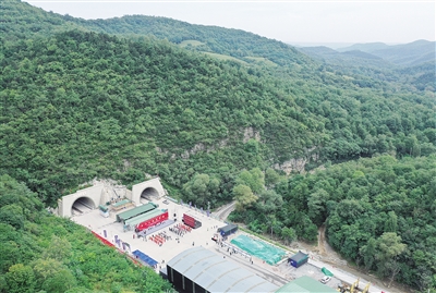 这是位于陕西省宝鸡市麟游县的麟法高速石臼山隧道(无人机照片,9月1日摄)。