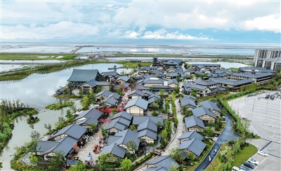 九月十六日拍摄的启东启唐城(无人机照片)。近年来,江苏省启东市依托丰富的旅游资源和独特的区位优势,加快文旅融合发展,不断扩大旅游产品供给,持续完善基础设施建设和接待服务设施建设,推动旅游业高质量发展。 新华社记者 季春鹏摄