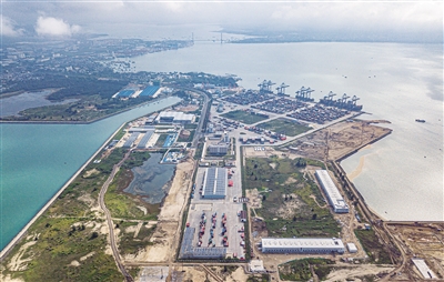 10月25日拍摄的洋浦港封关运作项目和洋浦国际集装箱码头(无人机照片)。
