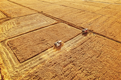灵丘县东河南镇围绕“一村一品”发展思路,积极探索特色产业发展,今年引进大同勇和平型关农业科技有限公司,流转耕地800亩,利用砂碱地进行种植,引唐河水灌溉,因地制宜,在该镇蔡家峪村发展有机水稻,带动农民就近就业,为乡村振兴和农民增收注入活力。图为10月30日水稻开始收割,预计本月3日完成收割作业。 本报记者 张占兵 通讯员 邓立志摄