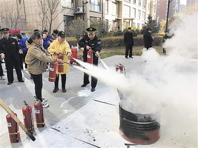 活动中,山西全安消防科普服务中心的教官首先向大家讲解了防火知识,以及遇到火灾如何做好防护和安全逃生等。随后,在活动现场,教官通过讲述典型案例,将防火、灭火、逃生、自救四个方面的知识深入浅出地进行了讲解,并向大家介绍了灭火器、防毒面具、消防栓等消防设施设备的正确使用方法。之后,培训人员进行了现场逃生、灭火演练。此次活动为小区营造安全、稳定、良好的消防安全环境打下了坚实的基础。