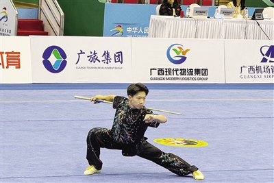 武术套路比赛在南宁市广西壮族自治区体育馆举行,大同选手彭博在男子长拳棍术全能比赛中,一套长拳演练身形飘逸、动作利落,棍术凌厉刚猛、虎虎生风,以长拳成绩11.0100、棍术成绩10.877、总成绩21.887获得银牌。据大同武术队总教练刘武强介绍,彭博是一个非常优秀的武术苗子,他自幼活泼好动,6岁时偶然接触武术,就对武术特别感兴趣,最开始只是跟着广场的大爷大妈练,后来进入大同武术队训练,进步迅速。功夫不负努力人,这次的成绩证明所有努力都会向好的方向发展。
