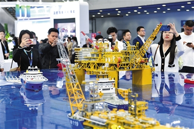 11月23日,观众在现场观看中国海油深水油气田勘探开发模型。