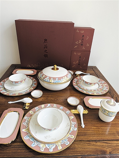 云冈研究院文化遗产艺术研究中心副主任王晨以《云冈装饰图案整理与应用》为题,向与会人员介绍了“鹿苑之韵”日用瓷设计思路。王晨说,鹿苑,又名鹿野苑,释迦牟尼成佛后首度说法处。北魏鹿野苑,在平城皇宫之北,武州山石窟寺居其中,留下众多可供后人学习借鉴的文化艺术遗产。这套日用瓷设计灵感源于云冈石窟第十窟前室北壁须弥山图像。通过多年在石窟中摹绘原稿,以“云冈红”为主色,“皇家金”与之相映成趣,将动、植物的灵动之美与山峦层叠之美有机融合在一起。该设计旨在体现各民族文化共存互补、交流融合的“和合”理念,同须弥图像寓意有很多相通之处,体现了人与自然的融合,力求功能性和审美性有机统一。须弥山众生和谐、美好生活的理想状态,借骨质瓷匠心工艺得以巧妙呈现,表达了和合共生、天下大同的美好愿景。