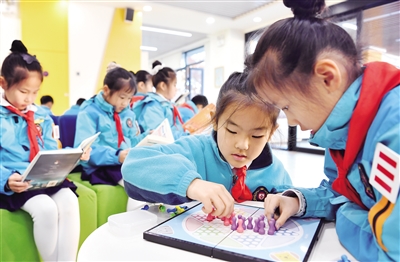 11月27日,西安市曲江第六小学学生在进行课间活动。