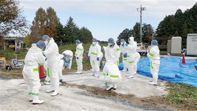 11月27日,在日本茨城县笠间市,当地工作人员组织消杀工作。