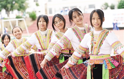 近年来,贵州省黔南布依族苗族自治州罗甸县以传承民族文化、传统文化为主线,将苗族芦笙舞、布依族粑槽舞、书法、蜡染等融入中小学教育的“第二课堂”,学生的课余活动异彩纷呈。 新华社记者 杨楹摄