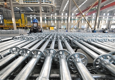 12月12日,工人在河北省唐山市丰南区一家新型建筑器材企业的生产线上工作。
