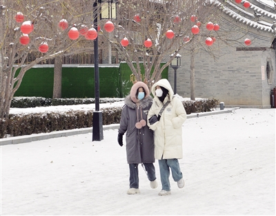 一场寒潮降雪过后,我市出现“断崖式”降温。根据气象预报显示,12月16日,市区夜间最低气温将降至-29℃,白天最高气温也只有-15℃。气象部门提醒外出的市民做好防寒保暖,谨防感冒。图为昨日,外出的市民穿上厚实的衣服抵御严寒。