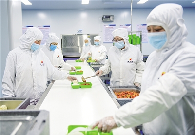 云冈区坚持“项目为王”理念,从项目落地到投产运营,为企业提供全流程服务,加大“领办”“代办”力度,帮助企业办事简环节、减时间、降成本。落户在云冈经济技术开发区标准化厂房内的鼎大厨智慧中央厨房公司,是一家集食品加工、供应链建设、仓储物流等为一体的综合公司。在云冈区的大力协助下,目前该企业已正式生产,产品在机关、校企的销售稳定增长。图为该公司分餐车间内,工人正在为学校定制的营养餐分餐。 本报记者 张占兵摄