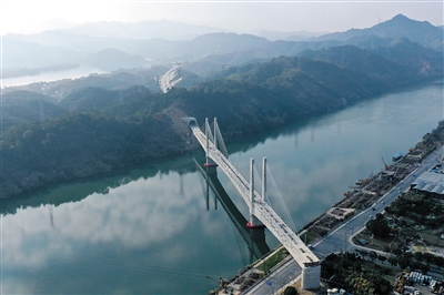 1月6日拍摄的杭衢铁路(建衢段)新安江特大桥及沿线隧道(无人机照片)。
